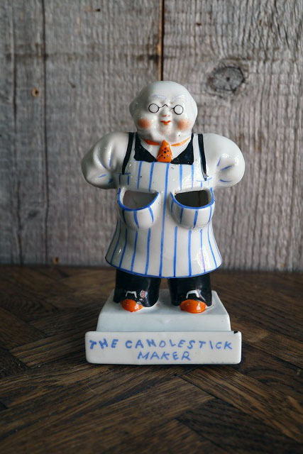 - ビンテージCandlestick Maker Toothbrush Holder人形 [goct-325]検アメリカUSA1940年代頃陶器セラミック人形雑貨GOLDCASTLEMADEINJAPAN