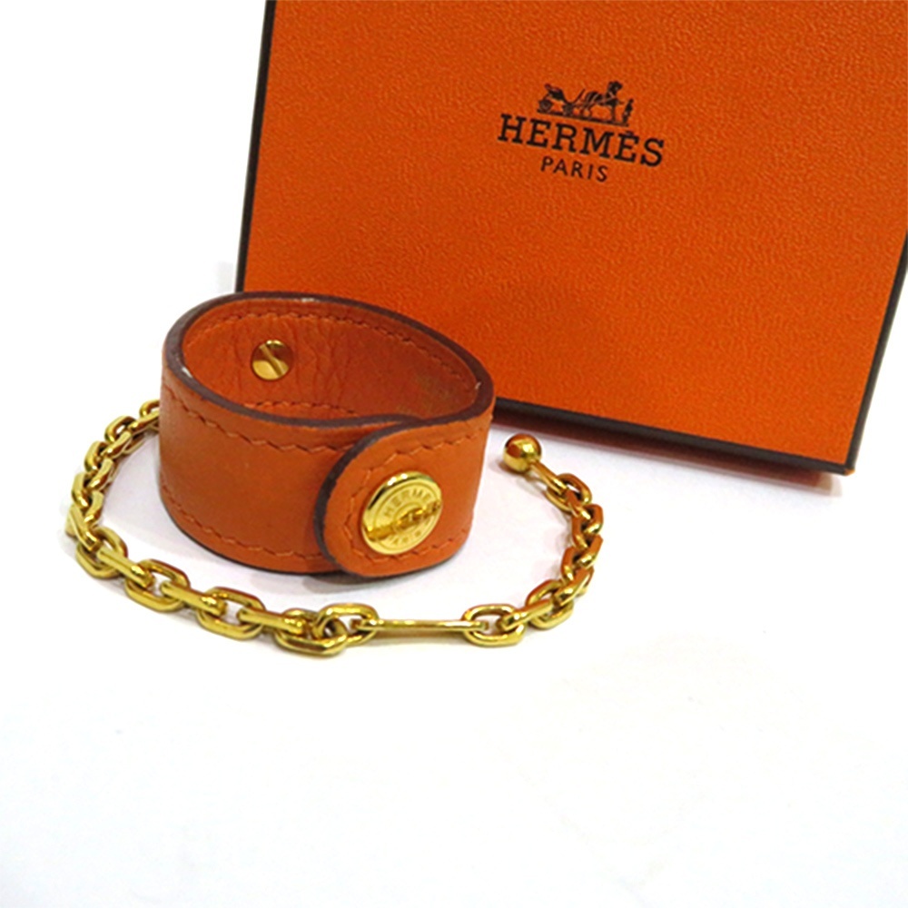 - 中古 エルメス グローブホルダー ABランク □H刻印 オレンジ ゴールド レザー レディース HERMES 【送料無料】【西神店】