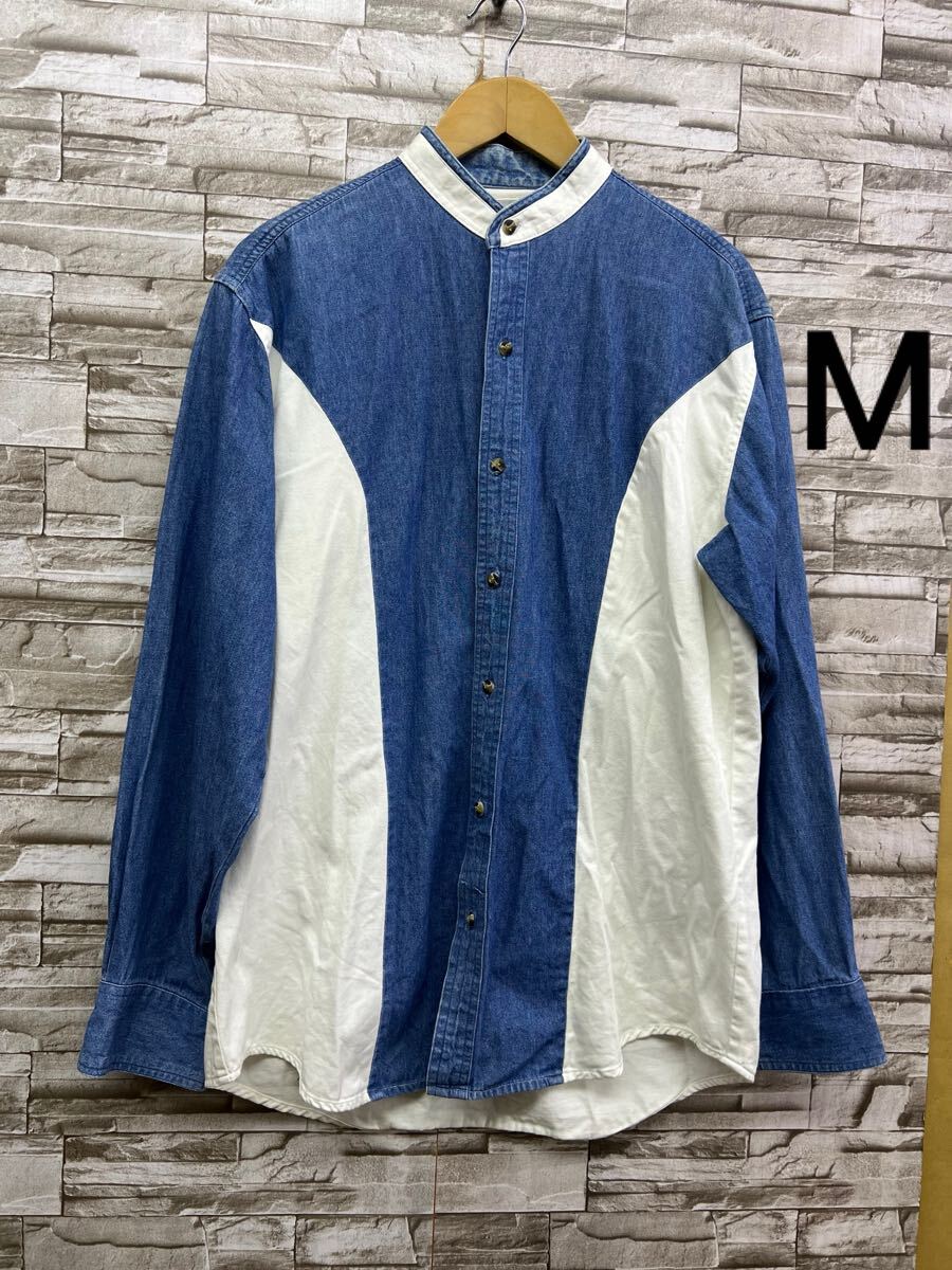- M EXPRESSRIDER エクスプレスライダー ブルー ホワイト 長袖シャツ シャツ 長袖 トップス