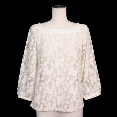 > ケーティー キヨコ タカセ K.T KIYOKO TAKASE カットソー ブラウス スクエアネック シースルー 花 フラワー 長袖 9 白 ホワイト レディー