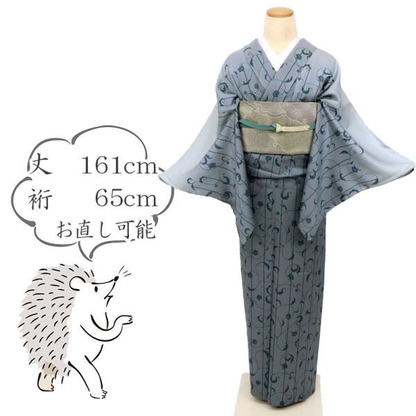 - 【付下げ】 特選 花唐草のライン 濃淡ブルーグレー 袷正絹着物 HA12-17