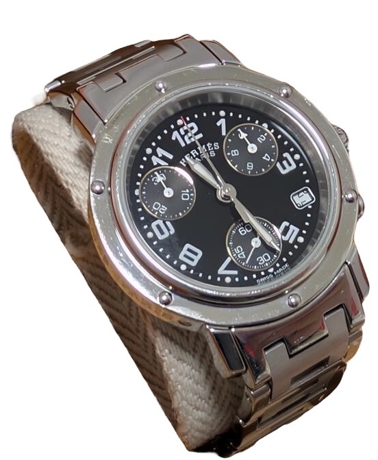 > エルメス クリッパー レディース CL1.310 クロノグラフ 時計 SS プッシュ式後期バックル HERMES 【中古】