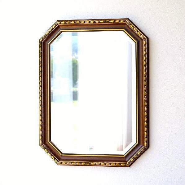 - 鏡 壁掛けミラー アンティーク イタリア製 八角 ウォールミラー イタリアンミラー アンティークゴールド 送料無料(一部地域除く) ebn1391