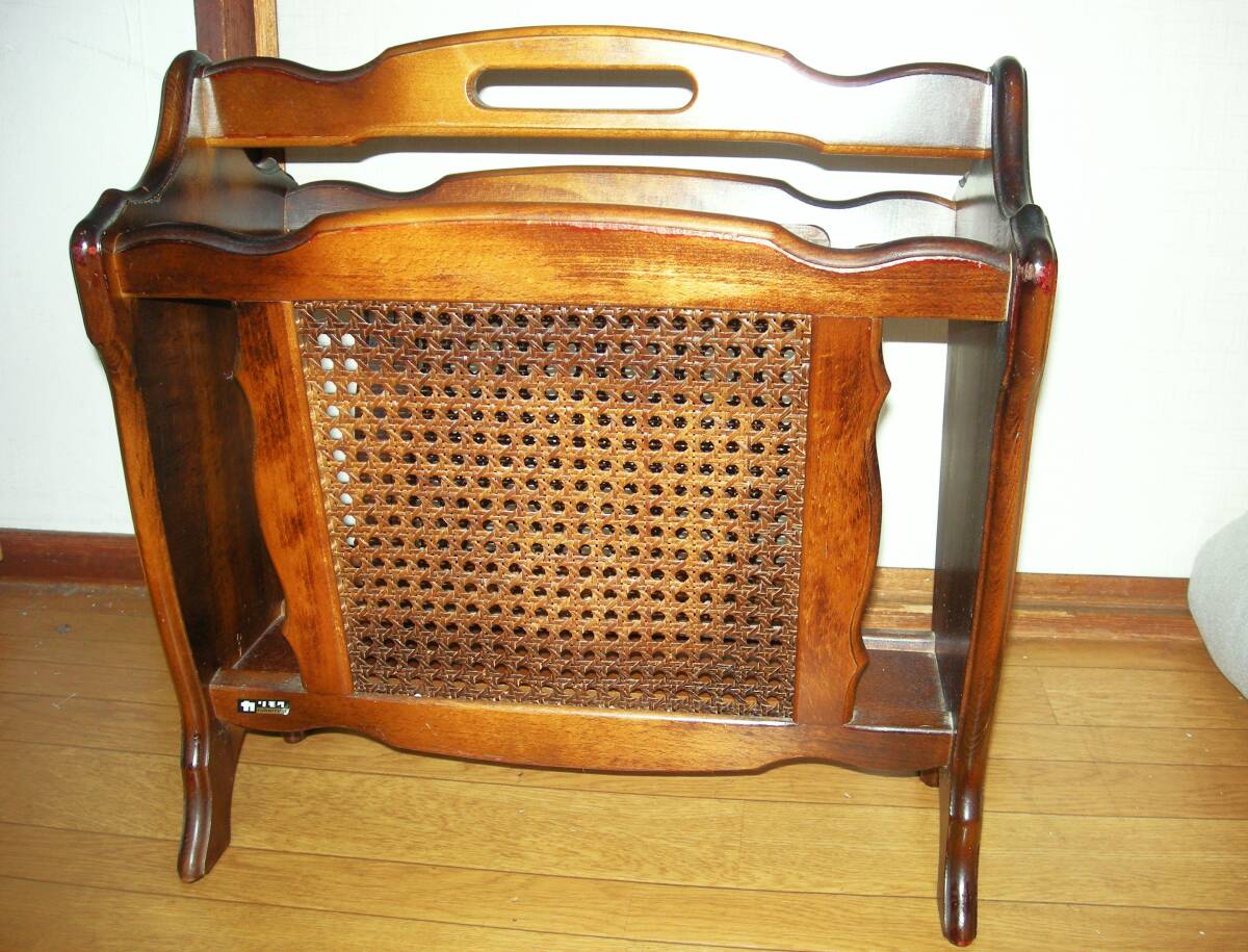 - カリモク家具 美品 マガジンラック COLONIAL コロニアル シリーズ 希少 廃盤品 ブナ材無垢 籐編み Wラック 創業85年 木製家具 老舗 名門