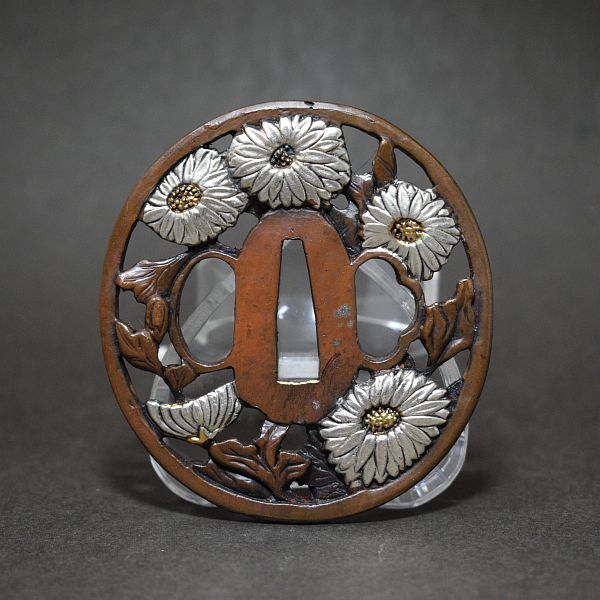 - 刀鍔 菊華 刀装具 小道具 日本刀 鍔 【a11-85-】