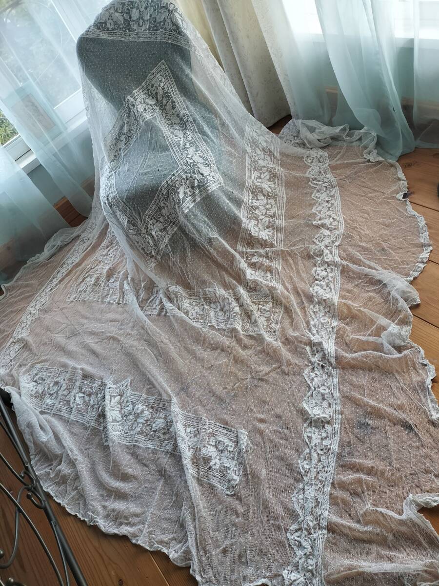 - フランス アンティーク 奇麗なレース カーテン ベッドカバー ナチュラル 水玉 レース!