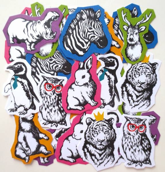- 新品&即決 フレークシール8種24枚/動物 アニマル ペンギン うさぎ トラ 熊 しまうま 鹿 カバ ふくろう/スクラップブック 手帳