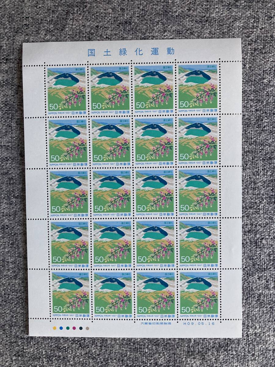 - ★未使用 国土緑化運動 蔵王のお釜 ミヤギノハギ 宮城県 1997年 平成9年 切手シート 50円 20枚 日本郵便