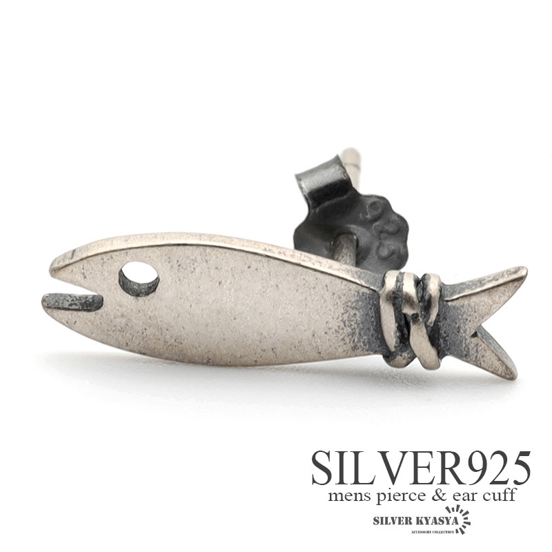 - シルバー925 スタッドピアス メンズ シルバー フィッシュピアス 魚 金属アレルギー 片耳用 1点