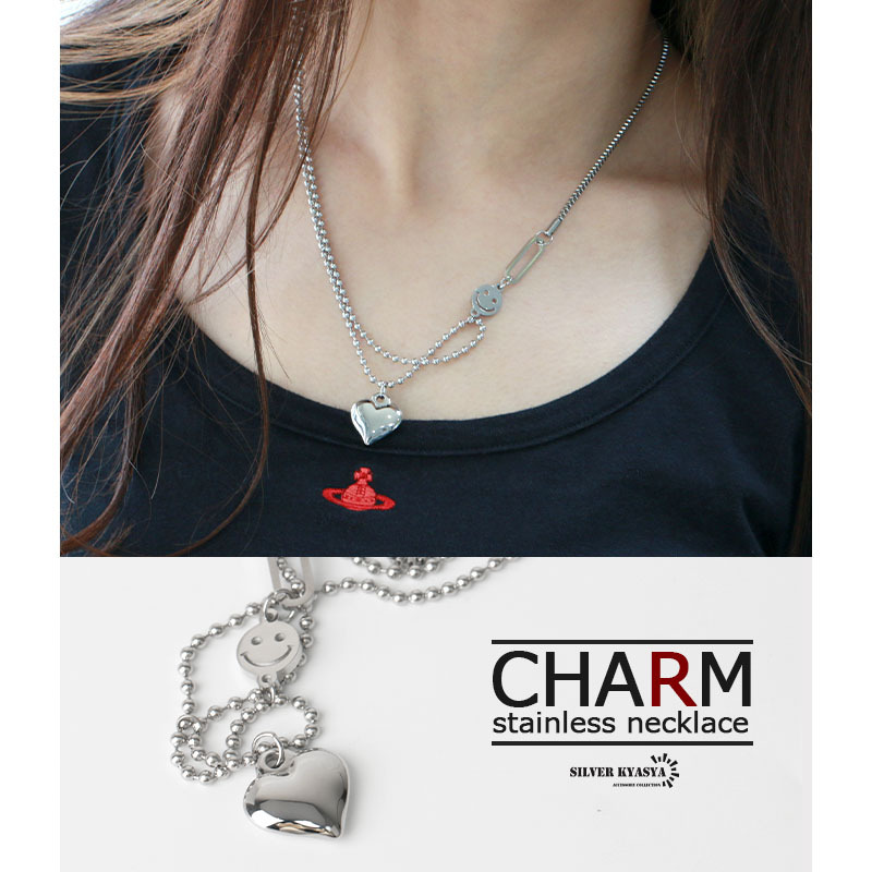 - チェーンネックレス ステンレス ベネチアンチェーン ボールチェーン シルバー ベネチアン ボール 金属アレルギー ハート スマイル
