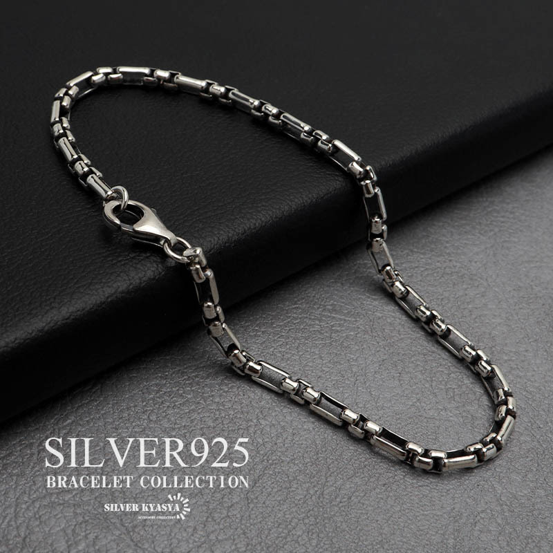 - シルバー925 フィガロチェーンブレスレット シルバーブレスレット 細身 メタリック 金属アレルギー対応