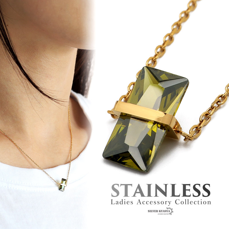 > ネックレス ステンレス 金属アレルギー レディース グリーン 緑 一粒ネックレス 18KGP チェーン 細身 極細 ゴールド
