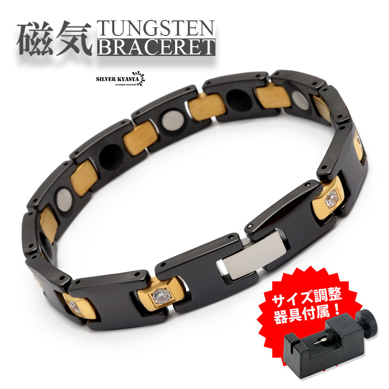 - 磁気ブレスレット タングステン セラミック ビーズ CZ 18k ip gold ゴールド 磁力 磁石 金属アレルギー対応