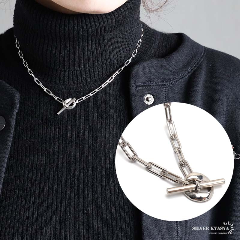 - シルバー925素材 長小豆チェーン マンテルネックレス ロング小豆チェーンネックレス Tバー OT