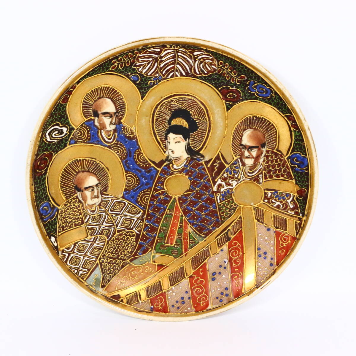 - 薩摩焼 吉山 金襴手人物 皿 羅漢デコ盛 オールドサツマ 絵皿 金彩