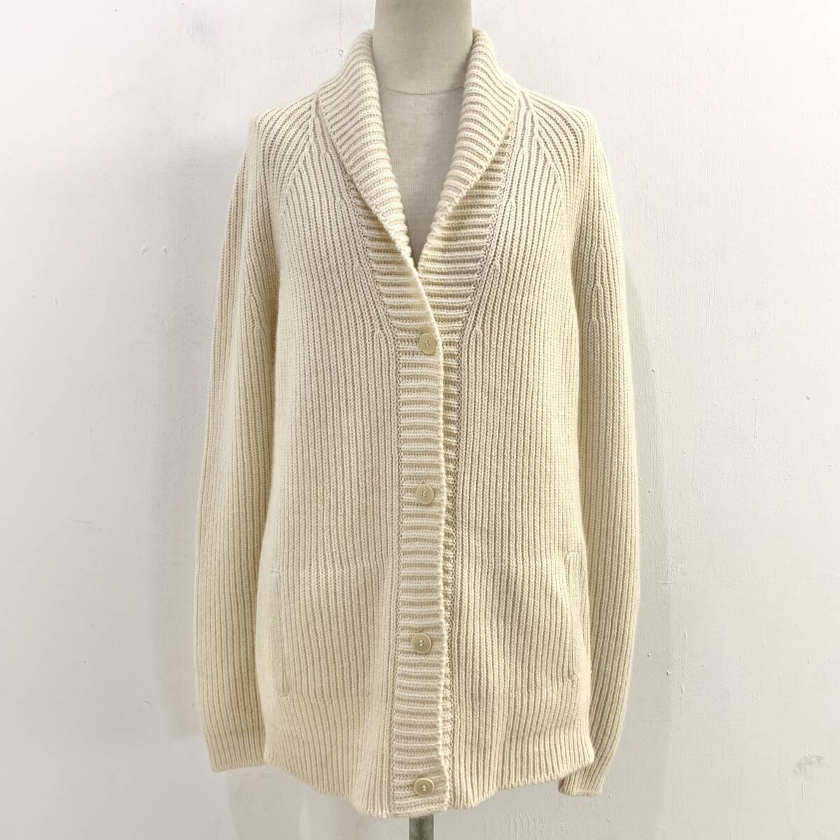 - ☆最高級 Loro Piana ロロピアーナ BABY CASHMERE ベビーカシミヤ100% ショールカラーカーディガン オフホワイト 40【送料一律/同梱可能】L