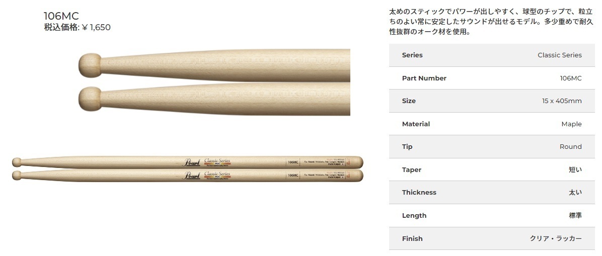 - Pearl パール メイプル 106MC 村上“ポンタ”秀一モデル 6ペア