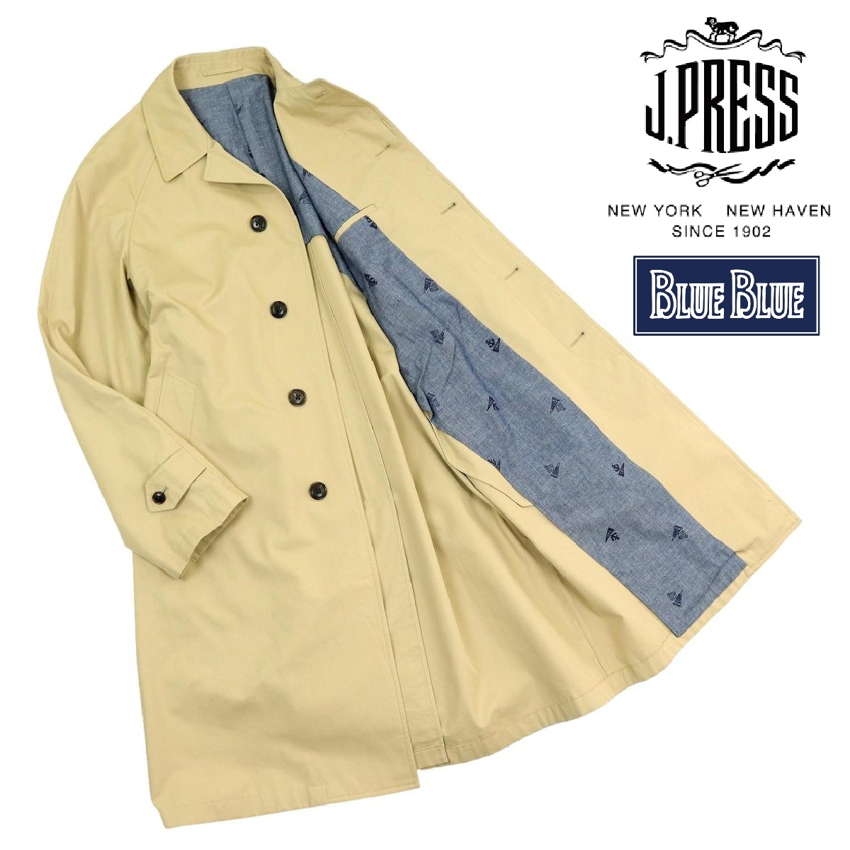 > 【B3290】【極美品】【ビッグサイズXL】J.PRESS×BLUEBLUE ジェイプレス ブルーブルー ステンカラーコート 比翼コート 別注