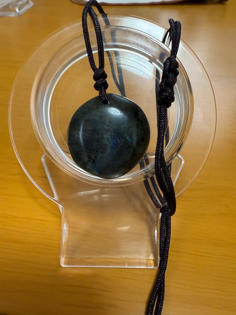 - ラブラドライト 紐調整式ネックレス ラブラドレッセンス全面にたっぷり