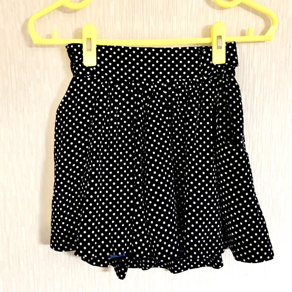 > 匿名配送 水玉キュロットスカート ウエストゴムリボン ネイビーブルー ドット紺色 ミニスカート スカパン ショートパンツ キュロットパンツ