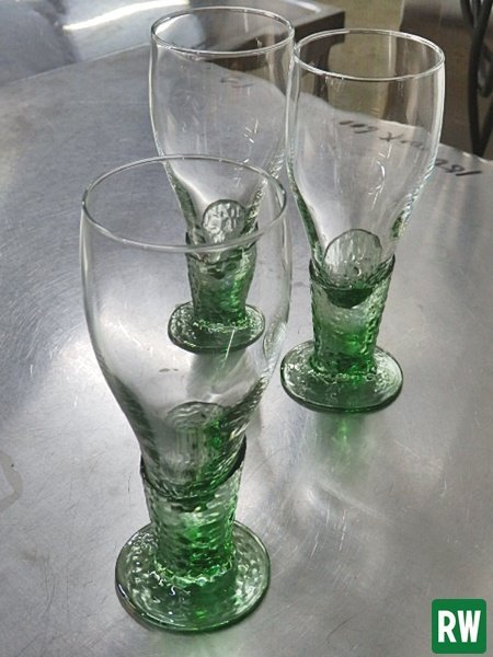 - 【3個セット】 佐々木硝子 ドミンゴ グラス グリーン 高さ17.5cm 昭和レトロ ガラス食器 酒器 冷酒グラス タンブラー [3]