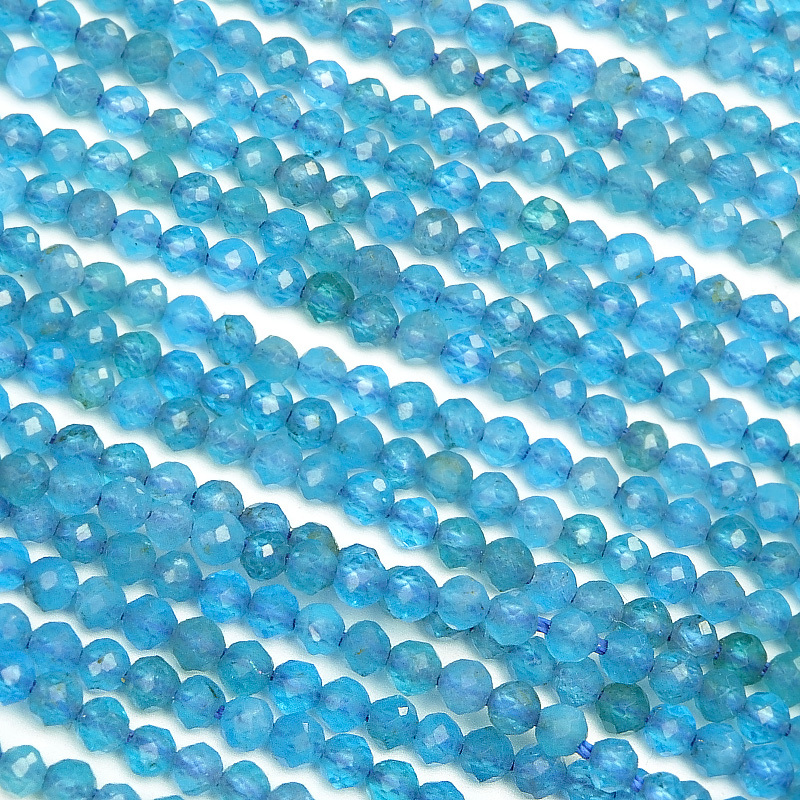 - ブルーアパタイト 面カット 丸玉 2mm[プレミアムカット]【1連販売】 / 7-19 AP2MC-X