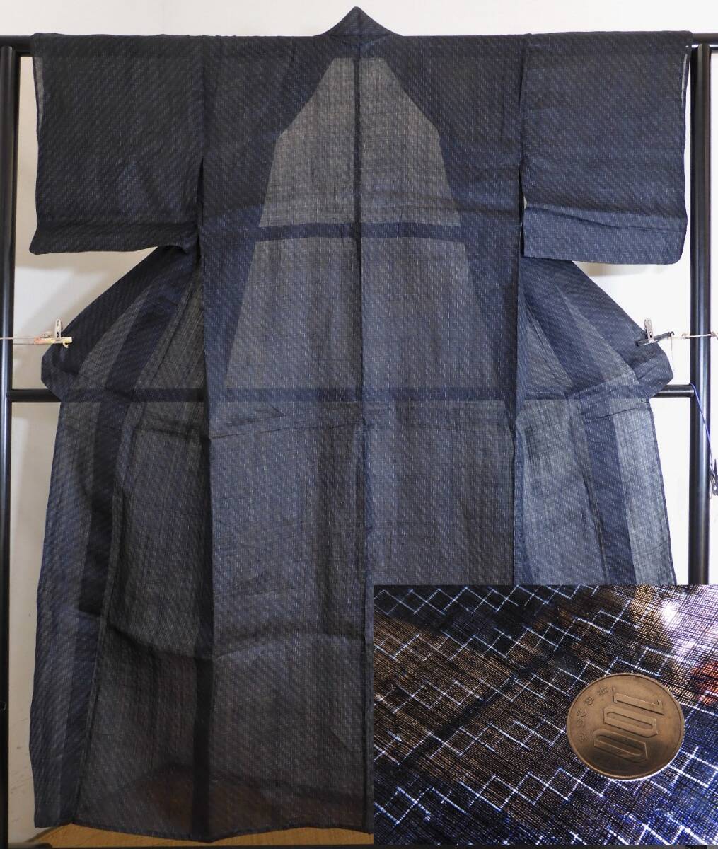 > <銀の斧>麻・本場宮古上布着物・手績手織の苧麻・糸絣織・琉球藍・糸印・リメイク用