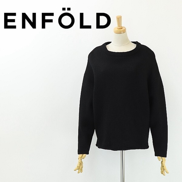 - ◆ENFOLD エンフォルド ドロップショルダー ウール ニット セーター 黒 ブラック 38