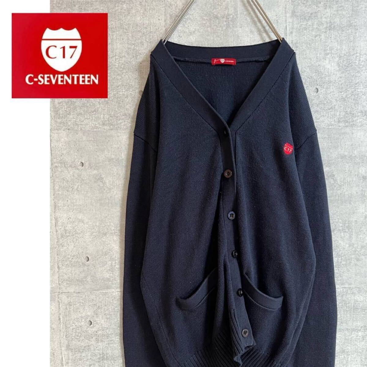 - C17 ニットコート ニット カーディガン コート ジャケット アウター 紺 ネイビー C-SEVENTEEN Lサイズ