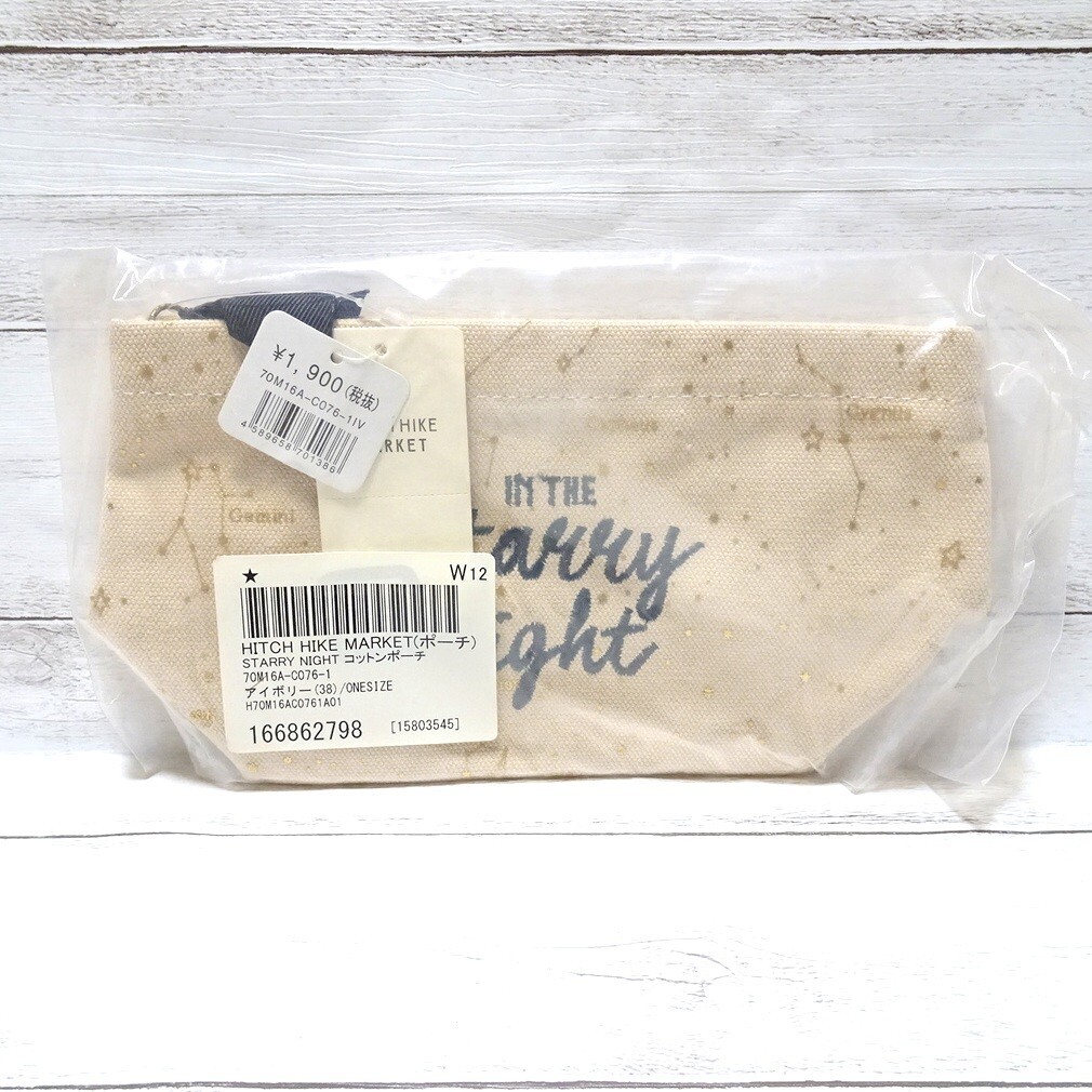 - 2187 送料無料 新品未開封 ヒッチハイクマーケット ポーチ スターリーナイト コットンポーチ アイボリー 約21×12×8.5cm 星空 星柄