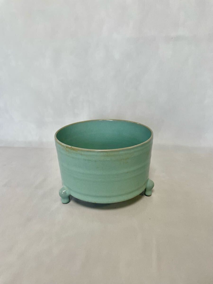 - 青磁澱青釉 三足香炉 径18.2cm高さ12.5cm 古玩 中華アンティークコレクション 工芸品 陶芸 中国美術骨董 お香 アロマ k2 50m 均釉 時代物