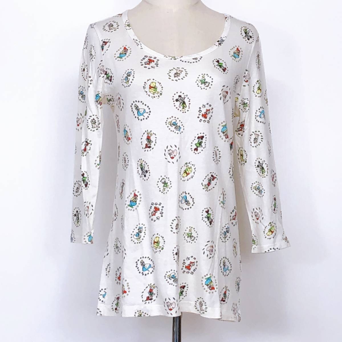 - YX553 UNIQLO(ユニクロ)レディース トップス Tシャツ 長袖 丸首 薄手 伸縮性Mサイズ白カラフル総柄綿100%かわいいキュートカジュアル春秋