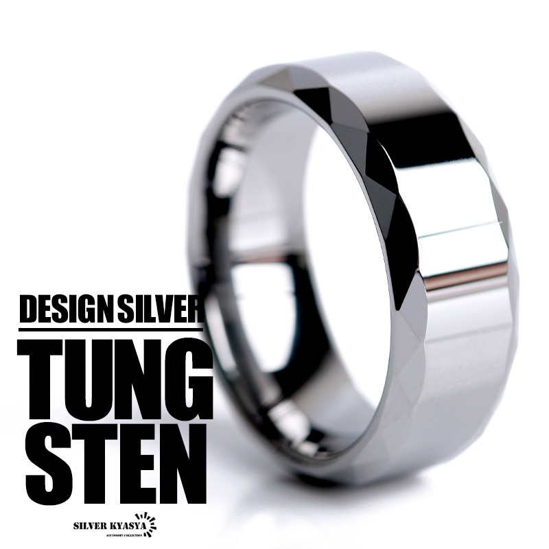 - (19号) タングステン ダイアモンドカット リングリング デザイン シルバー ごつめ 太幅 幅8mm BOX付
