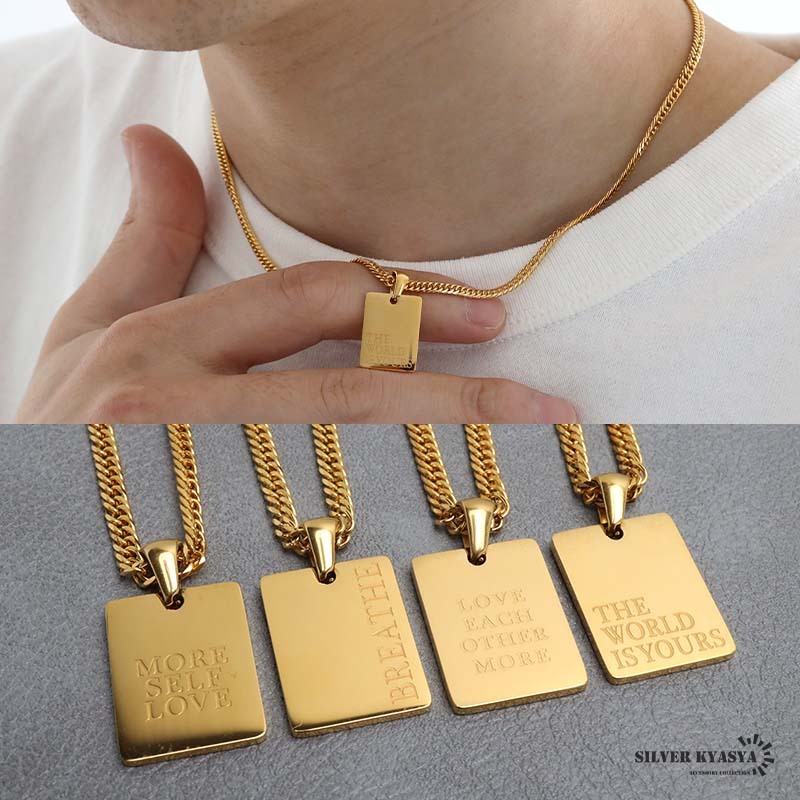 - (Aタイプ、60cm) ドッグタグネックレス ゴールド メンズ 四角 ステンレス 18KGP ダブル喜平 金属アレルギー対応