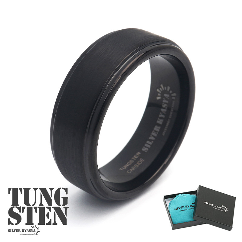 - (24号) タングステン ブラック リング メンズ 指輪 黒 シンプル マット 金属アレルギー対応 専用BOX オリジナル