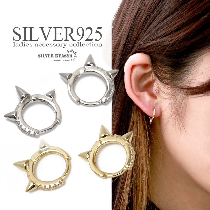 - (ゴールド) 両耳用2点セット スタッズ 鋲 CZ フープピアス シルバー925 シルバー ゴールド 18K GP