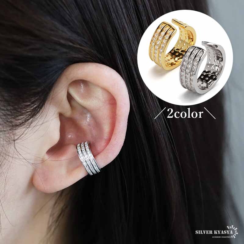 - (シルバー) シルバー925 ラインイヤーカフ ジルコニアイヤーカフ ゴールド 18KGP イヤカフ 金属アレルギー対応 片耳