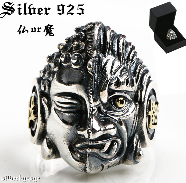 - (21号) シルバー925素材 一念 仏と魔 リング 925 シルバー指輪 悪魔 仏陀 専用BOX付き シルバーアクセサリー