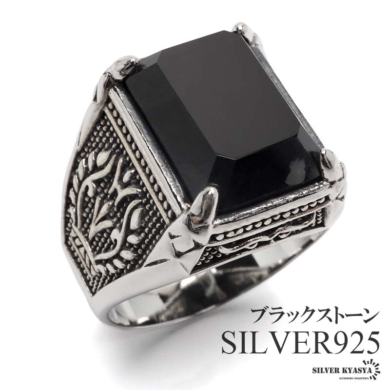 - (23号) シルバー925 大粒ストーンリング ブラック ワイドリング シグネットリング カレッジリング 指輪 男性 金アレ対応