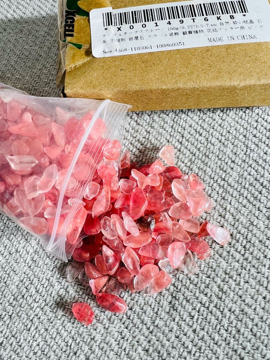 - タンブルチップスストーン 100g ピンク 花瓶フィーラ用 クラフト 天然石