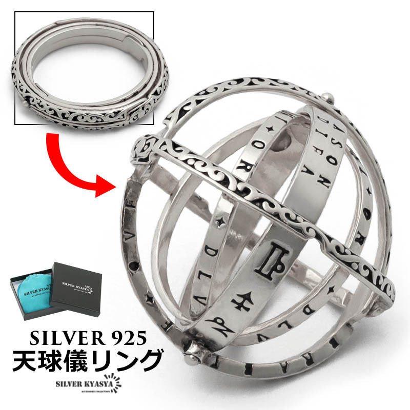 > (13号) シルバー925 天球儀リング シルバーリング 指輪 天体 太陽 月 惑星 天球儀 ギミックリング 変形 BOX付属