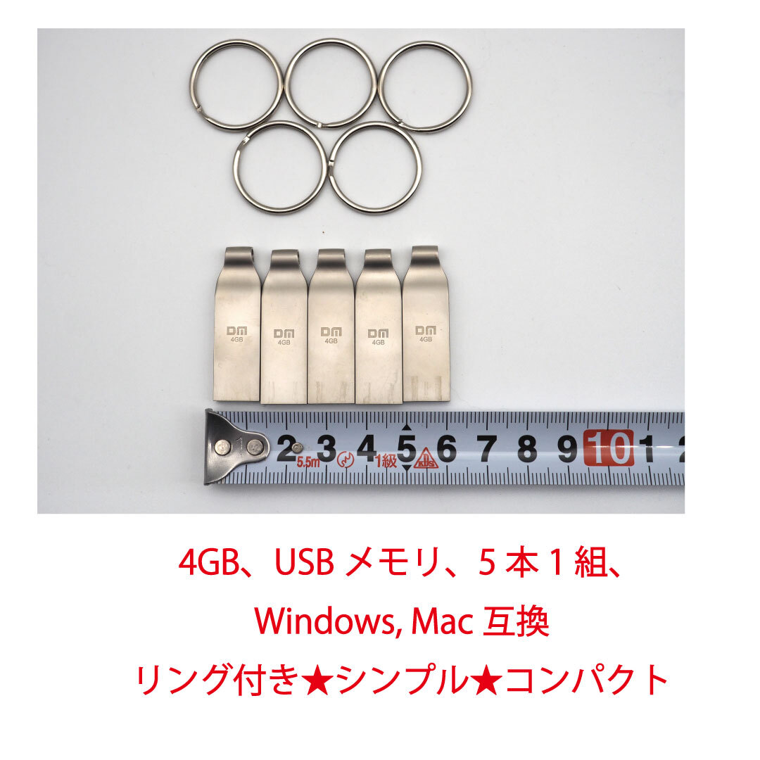 - ★Windows★MAC★互換★FAT32フォーマット済み★USBメモリ★4GB★5本セット★シンプル★コンパクト★リング付き★メモ代わりちょうど★013