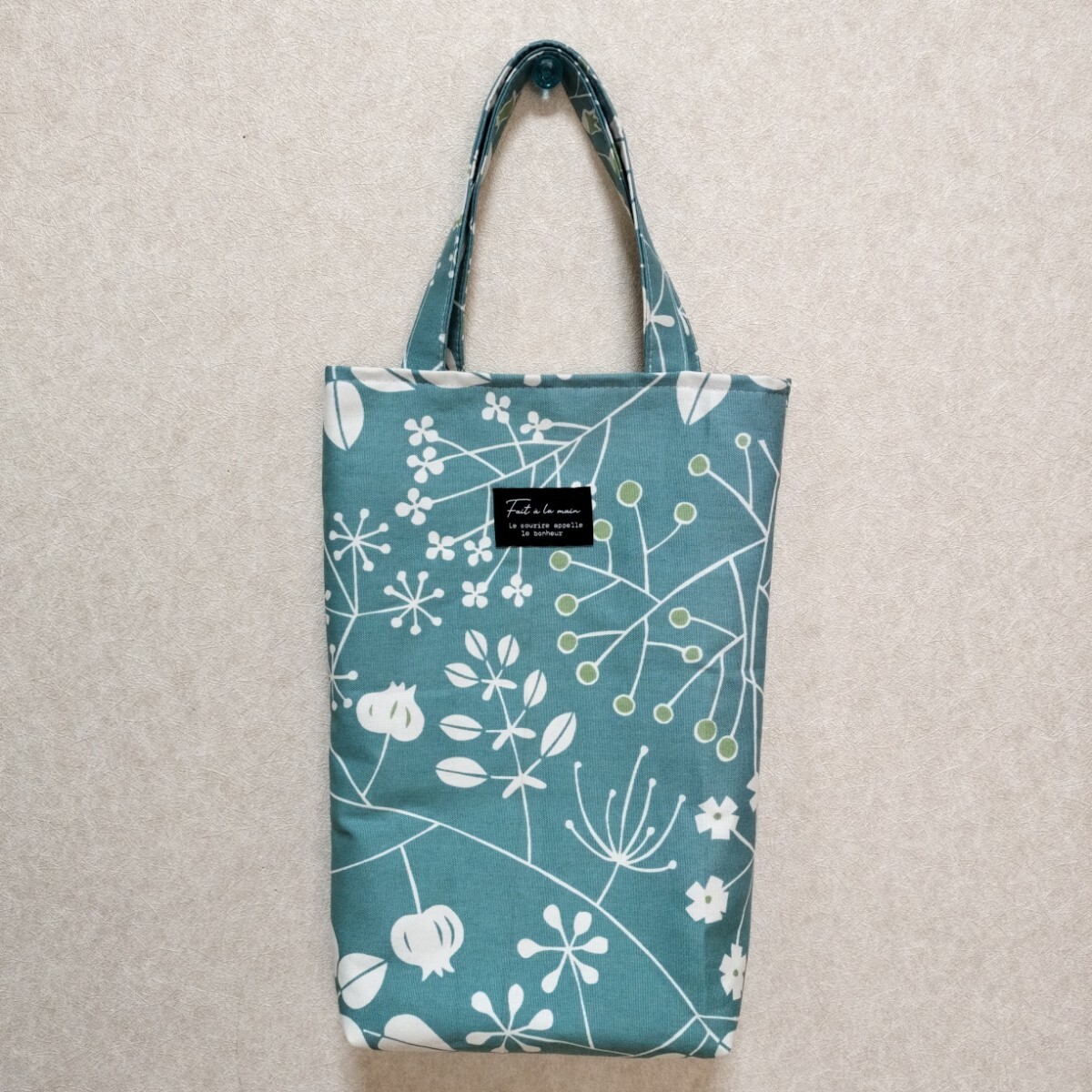- 手提げバッグ ハンドメイド ボタニカル柄 葉っぱ柄 トートバッグ シューズケース サブバッグ