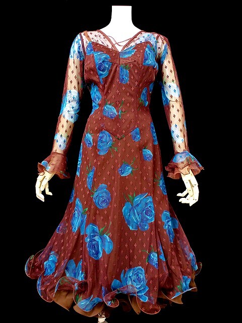 > 3Q売切!税無し☆ドレス■社交ダンス■Lovely Dancing■SIZE:9■茶■薔薇■舞台衣装■大会用■発表会■日本製■現状■現品限り■0205-1