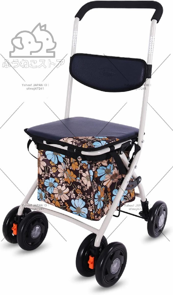 - 高齢者手押し車 老人 手押し 車 折りたたみ シルバーカー 座れる 軽量 コンパクト 介護 老人 歩行車 歩行器 ブルー フットブレーキ