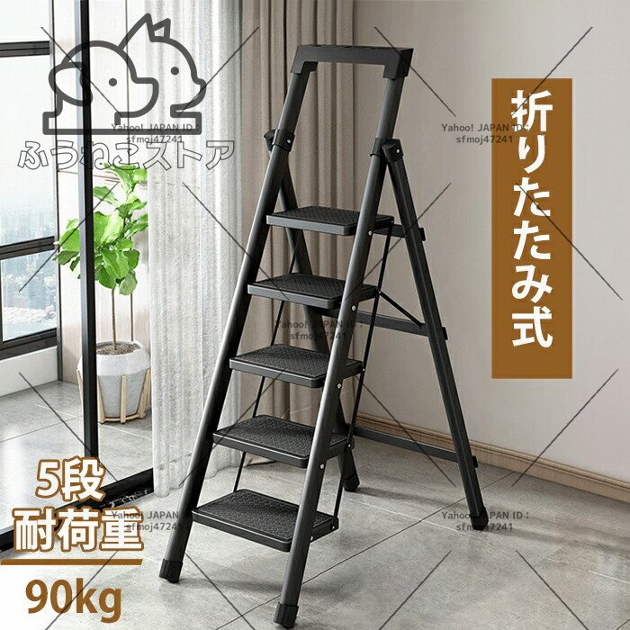 - 踏み台 脚立 折りたたみ 軽量 ステップ脚立 おしゃれ 滑り止め付き 梯子 ステップ台 150KG耐荷重 持ち運び便利 室内室外両用 (5段)