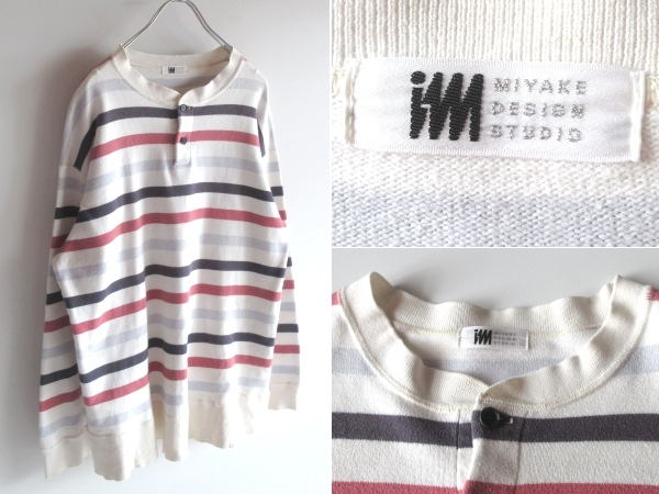- 希少 80sビンテージ im ISSEY MIYAKE DESIGN STUDIO アイム イッセイミヤケ ヘンリーネック マルチボーダー カットソー 長袖Tシャツ L 白