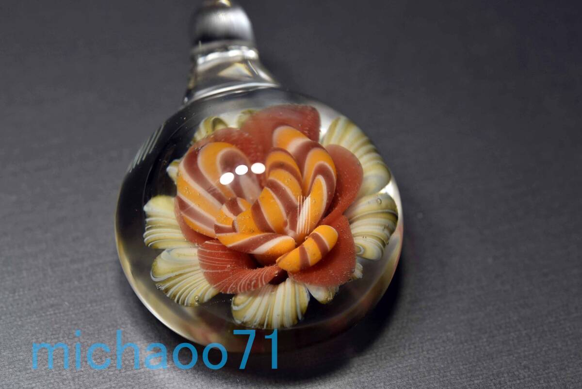 > フラワー グラスペンダント ガラスの中に咲いた花 ( 12081-p21)立体花 FLOWER ガラスのペンダントトップ 透き通ったガラスの中に作咲く花