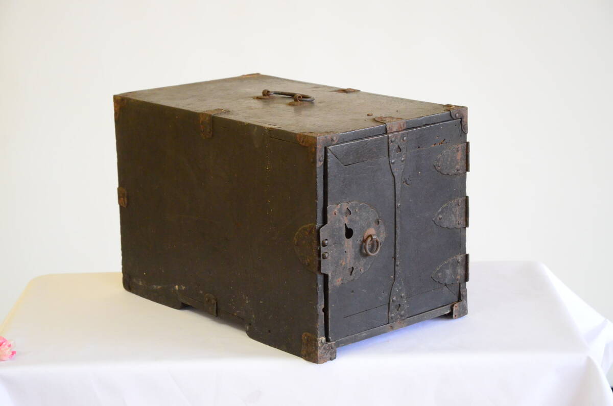 銭箱 小箪笥 小物入れ 金具付き 骨董 アンティーク 縦28cm 横26cm 奥行42cm