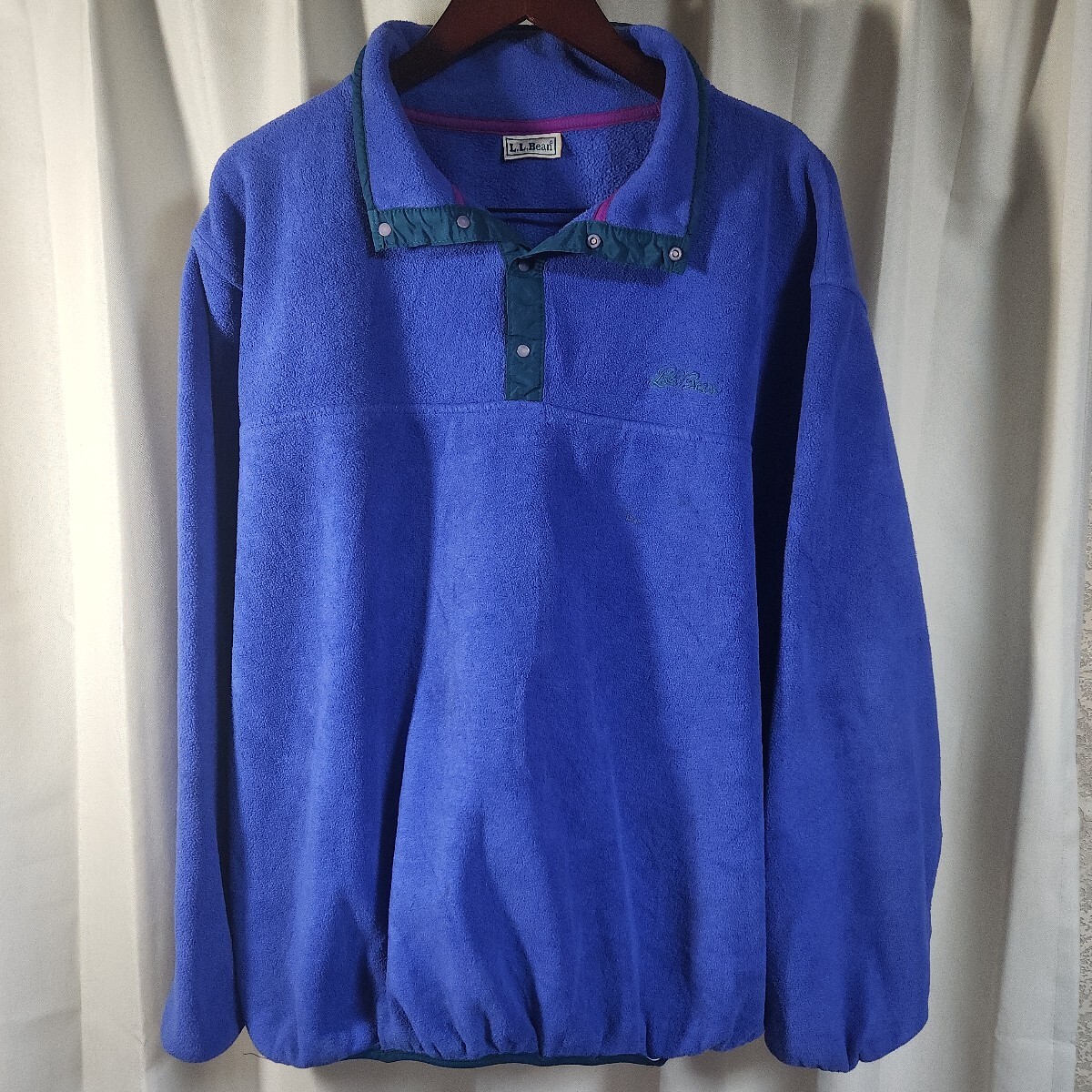 - LL BEAN エルエルビーン フリース スナップT サイズLぐらい パープル ブルー ハーフボタン プルオーバー